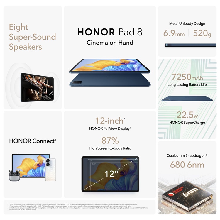 แท็บเล็ต Honor Pad 8 หน้าจอ 12 นิ้ว ลำโพง 8 ตัว