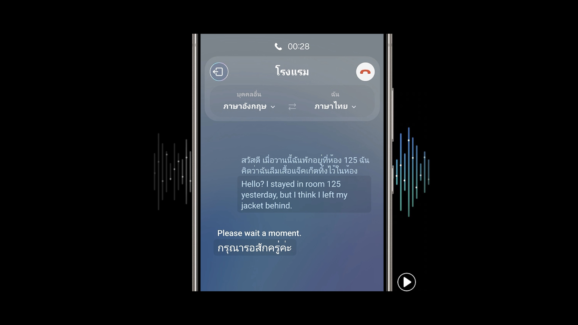 ฟีเจอร์นี้ให้ความรู้สึกเหมือนวุ้นแปลภาษาที่สามารถโทรหาเพื่อนแล้วแปลภาษาของเสียงสนทนาได้เลย พูดปุ๊ป แปลปั๊ปแบบเรียลไทม์ เพียงแค่เลือกภาษาที่ฝั่งต้นสายพูด กับภาษาปลายสายที่ต้องการแปล โดยปลายสายก็จะได้ยินเสียงเป็นภาษาที่เลือกให้แปล ไม่มีอินเทอร์เน็ตก็ใช้งานได้ และสามารถแปลข้อความในแชทได้ด้วย