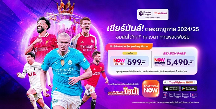 หรือคลิก https://truevisions-now.onelink.me/RQwi/zrw142fi สำหรับข้อมูลเพิ่มเติม พรีเมียร์ลีก ซีซั่นใหม่ 2024/25 คลิก https://truevisions.co.th/