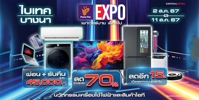 เพาเวอร์บาย ในเครือ เซ็นทรัล รีเทล ช่วยคนไทยลดค่าครองชีพ จัดงาน “Power Buy Expo” พาเหรดเครื่องใช้ไฟฟ้า อิเล็คทรอนิกส์ สินค้าไอที และแกดเจ็ต พร้อมด้วยนวัตกรรมสุดล้ำ สินค้าคอลเลคชั่นล่าสุด ที่มาให้เลือกสรรกว่า 10,000 รายการ ลดครั้งใหญ่สูงสุด 70%